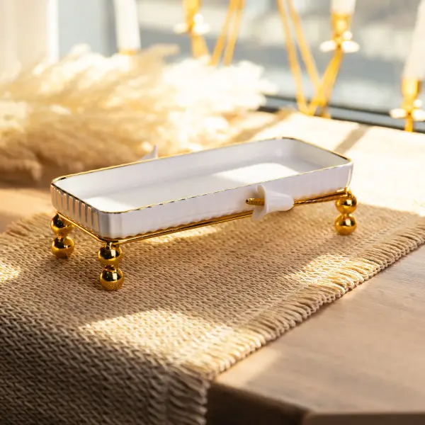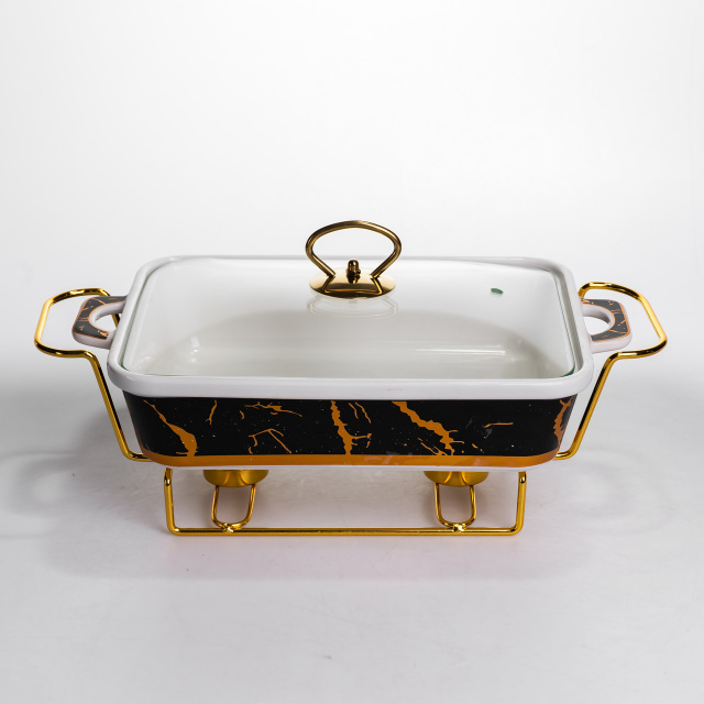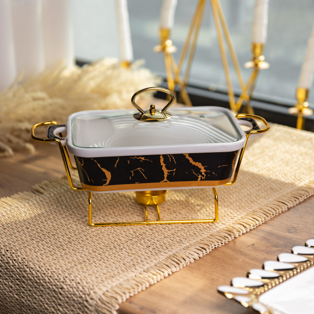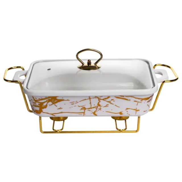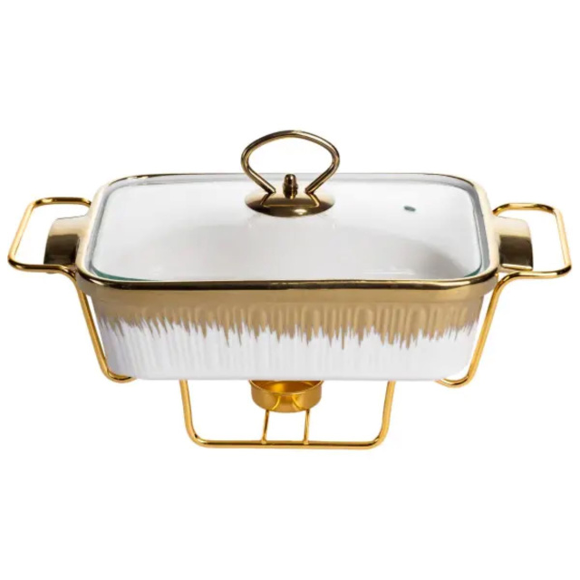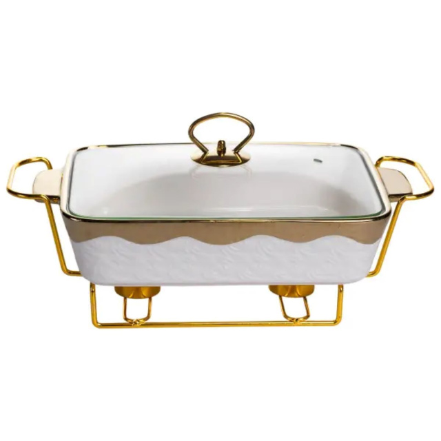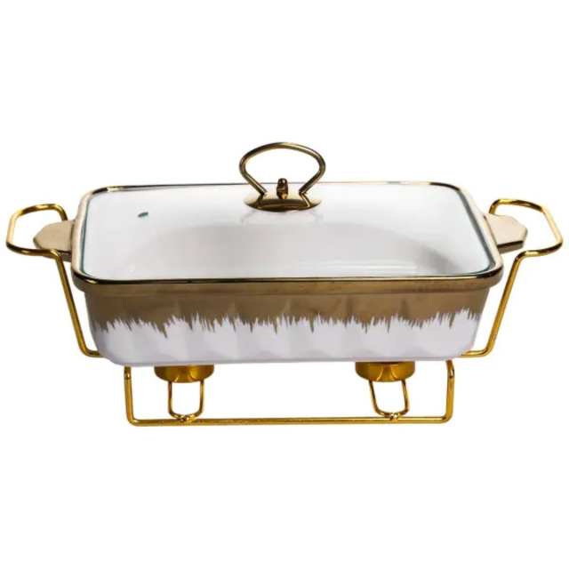 Мармітниця порцелянова прямокутна на металевій підставці 35.5х19х15.5 см LT-3PCS-13