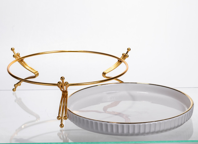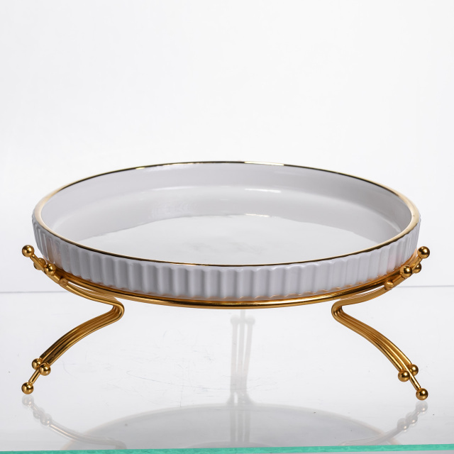 Фруктовниця порцелянова на металевій підставці Ø25 (см) кругла ваза цукерниця для фруктів Золото LB-1573G, Закарпатська область