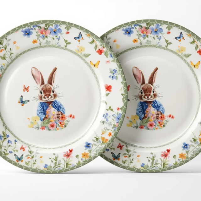 Набір обідніх тарілок Garden Rabbits виготовлений із якісної порцеляни та призначений для сервірування основних страв. Діаметр 25 см забезпечує достатньо простору для зручної подачі різноманітних страв. По обідку тарілки нанесений яскравий деталізований квітковий візерунок із зображенням весняних квітів та метеликів. У центрі композиції — кролик серед квітів, що створює тематичний акцент і додає сервіруванню весняної атмосфери. Порцеляна сприяє рівномірному прогріванню страв, відзначається стійкістю до подряпин, а гладка глазурована поверхня полегшує миття та догляд. Тарілки підходять для щоденного використання, поєднуючи практичність і декоративність. Характеристики: Матеріал: порцеляна Діаметр: 25 см Кількість у наборі: 2 шт. Вага набору: 1,3 кг