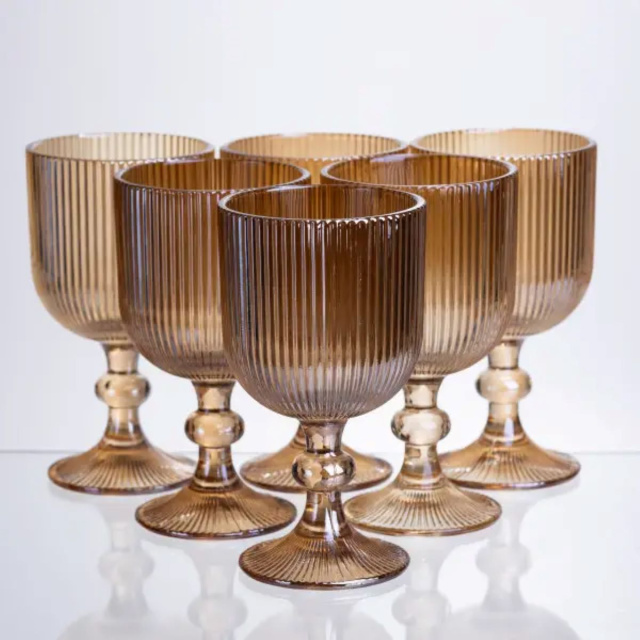 Набір келихів для вина 6 штук по 300 мл ребристих із товстого скла коричневий HP-19-225, Закарпатська область