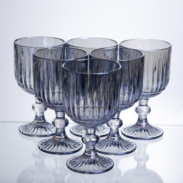 Набір келихів для вина 6 штук по 300 мл ребристих із товстого скла синій HP-19-237, Закарпатська область