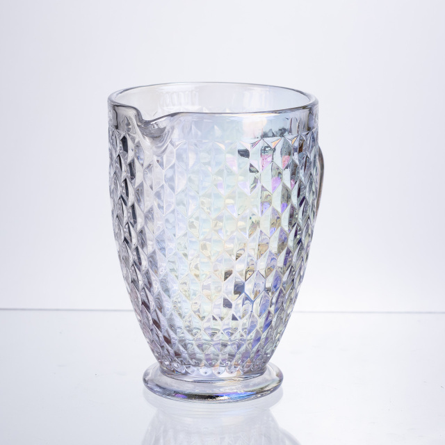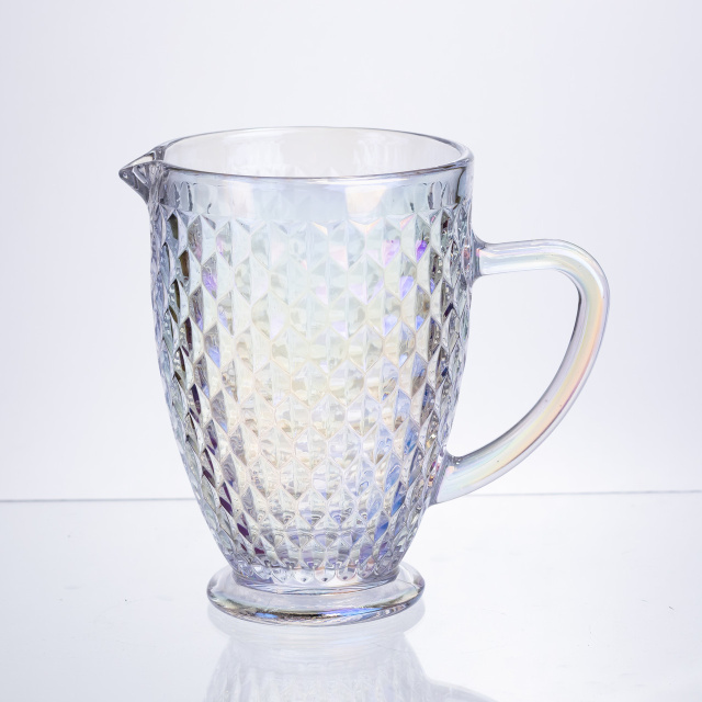 Глечик для напоїв об’ємом 1.2 л виготовлений із товстого скла. Він має декоративну поверхню з рельєфними вигинами у формі ромбів. Такий дизайн додає візуального об'єму та сприяє грі світла на склі, що особливо помітно при сервіруванні напоїв. Прозоре скло дозволяє бачити вміст, а товсті стінки забезпечують міцність. Форма глечика продумана для зручного наливання — виріб має зливний носик і суцільнолиту скляну ручку, яка зручно лежить у руці. Глечик займає мінімум місця на столі або в холодильнику. Матеріал не вбирає запахів і легко очищується. Глечик призначений для подавання води, соків, лимонадів та інших прохолодних напоїв. Його можна використовувати як у повсякденному побуті, так і для сервірування під час свят. Рекомендовано ручне миття або делікатний режим у посудомийній машині без абразивних мийних засобів. Характеристики: Об’єм: 1.2 л Матеріал: скло Висота: 18.5 см Діаметр: 12.5 см