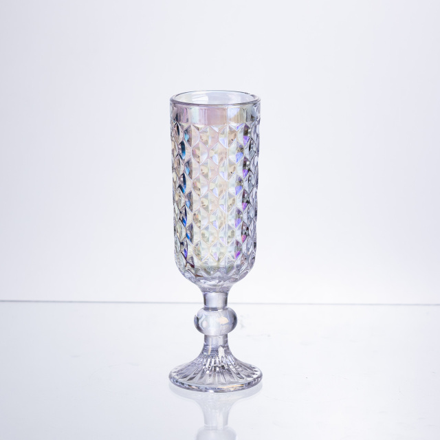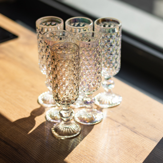 Набір келихів для шампанського виготовлений із прозорого товстого скла з ребристою фактурою. Класичний формат підходить для подачі ігристих напоїв,