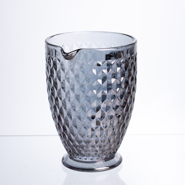 Глечик для напоїв об’ємом 1.2 л виготовлений із товстого скла. Він має декоративну поверхню з рельєфними вигинами у формі ромбів. Такий дизайн додає візуального об'єму та сприяє грі світла на склі, що особливо помітно при сервіруванні напоїв. Прозоре скло дозволяє бачити вміст, а товсті стінки забезпечують міцність. Форма глечика продумана для зручного наливання — виріб має зливний носик і суцільнолиту скляну ручку, яка зручно лежить у руці. Глечик займає мінімум місця на столі або в холодильнику. Матеріал не вбирає запахів і легко очищується. Глечик призначений для подавання води, соків, лимонадів та інших прохолодних напоїв. Його можна використовувати як у повсякденному побуті, так і для сервірування під час свят. Рекомендовано ручне миття або делікатний режим у посудомийній машині без абразивних мийних засобів. Характеристики: Об’єм: 1.2 л Матеріал: скло Висота: 18.5 см Діаметр: 12 см