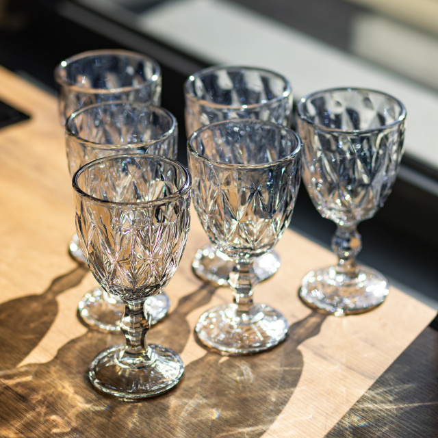Елегантний набір келихів об'ємом 300 мл, виконаних із прозорого скла з легким сіро-блакитним відтінком, відмінно підійде для подарунка або оновлення сервізу. Фактурний малюнок по всій поверхні надає келихам благородного і витонченого вигляду, красиво заломлює світло і підкреслює контури напою. Ідеальні для подачі вина, води, соків чи прохолодних коктейлів; підходять як для святкового столу, так і для повсякденного використання. Переваги: Набір 6 штук – зручно для сервірування гостей. Об'єм 300 мл – універсальний розмір для багатьох напоїв. Фактурний дизайн приховує дрібні сліди від пальців та надає виробам ефекту дорогого кришталю. Догляд: Рекомендується мити вручну або в делікатному режимі посудомийної машини. Не використовувати абразивні засоби для чищення, щоб зберегти блиск і фактуру. Характеристики: Матеріал: скло Об'єм: 300 мл Висота келиха: 16 см Вага набору: 2 кг