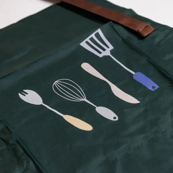 Кухонний фартух із поліестеру розміром 68×75 см підходить для приготування їжі вдома, у кафе або на професійній кухні. Завдяки продуманому крою він забезпечує достатнє покриття одягу під час роботи, допомагаючи захистити його від бризок, плям та забруднень. Універсальний розмір дозволяє комфортно використовувати фартух людям різної комплекції. Матеріал — поліестер із водонепроникними властивостями, що зменшує проникнення вологи та спрощує догляд. Тканина зберігає форму, стійка до зношування та підходить для багаторазового прання. Нагрудна частина доповнена принтом, а спереду розташована містка кишеня для зберігання кухонного приладдя, рушника або дрібних аксесуарів. Фартух має зав’язки для регулювання посадки та надійної фіксації під час роботи. Вага 200 г забезпечує баланс між щільністю матеріалу та комфортом у щоденному використанні. Практичний формат і функціональні деталі роблять його зручним рішенням для регулярного використання на кухні. Характеристики: Тип: кухонний фартух Матеріал: поліестер Розмір: 68×75 см Властивості: водонепроникний Вага: 200 г Наявність кишені: так