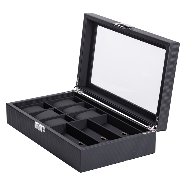 Скринька для наручних годинників та окулярів розміром 35,5х21х9,5 см - елегантне та функціональне рішення для зберігання аксесуарів. Скринька має 9