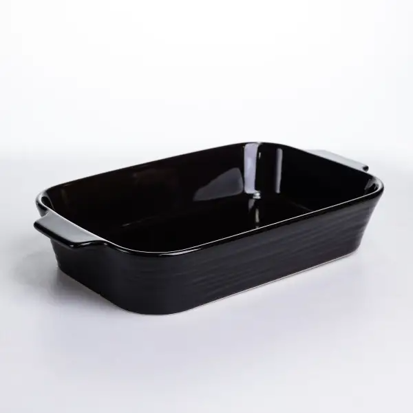 Ця форма призначена для тих, хто любить смачну домашню кухню. Фарфор забезпечує рівномірний розподіл тепла, тому запіканки, овочі та м'ясо виходять соковитими та ідеально пропеченими. Підходить для духовки, мікрохвильової печі та холодильника. Суворий чорний колір відмінно виглядає на столі, завдяки чому страви можна подавати прямо у формі. Догляд за формою досить простий: посуд можна мити вручну або в посудомийній машині. Однак при ручному миття рекомендується використовувати м'які миючі засоби та губки. Крім того, щоб уникнути пошкоджень, мити форму слід тільки після повного остигання і не допускати перепадів температур. Характеристики: Матеріал: порцеляна Об'єм: 2,3 л Розмір: 31*21*6 см Вага: 1,8 кг