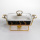 Порцелянова мармітниця призначена для зручного підігріву та подачі страв на стіл. Вона оснащена скляною кришкою, яка дозволяє контролювати процес приготування без необхідності відкривати мармітницю. Металева підставка золотистого кольору із вбудованим підігрівом забезпечує рівномірне збереження тепла страв протягом тривалого часу. Поверхня мармітниці виконана у чорному кольорі з золотими прожилками, що утворюють мармуровий малюнок. Така текстура не лише додає виробу вишуканого вигляду, але й робить його стійким до появи подряпин та плям від їжі. Скляна кришка щільно прилягає до порцеляни, запобігаючи втраті тепла та зберігаючи аромат страв. Мармітниця зручна у використанні для сервірування гарячих страв під час сімейних обідів або святкових заходів. Металева підставка з підігрівом легко підключається до джерела живлення, забезпечуючи підтримку оптимальної температури страв. Вона стійка на столі та не займає багато місця, що робить її практичним рішенням для кухні будь-якого розміру. Характеристики: Матеріал: порцеляна Кришка: скляна