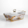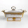 Мармітниця порцелянова прямокутної форми призначена для подачі та підтримання температури готових страв. Завдяки компактним розмірам та конструкції з підігрівом від свічки-таблетки її зручно використовувати як у домашніх умовах, так і під час сервірування столу для гостей. Скляна кришка дозволяє контролювати вміст без відкривання. Порцелянова ємність підходить для подачі гарнірів, м’ясних страв або закусок. Металева підставка золотистого кольору забезпечує стійке розміщення та передбачає місце для двох свічок, які підтримують температуру страви. Конструкція не потребує підключення до електромережі, що робить її зручною для використання в різних умовах. Мармітниця легко розбирається для очищення та зберігання. Розміри дозволяють розмістити її навіть на невеликому столі, а вага забезпечує достатню стійкість під час використання. Підходить для щоденного використання або сервірування під час подій. Характеристики: Форма: прямокутна Матеріал ємності: порцеляна Матеріал кришки: скло Матеріал підставки: метал Джерело підігріву: 2 свічки-таблетки Висота: 15.5 см Ширина: 22.5 см Довжина: 40 см Вага: 3.1 кг