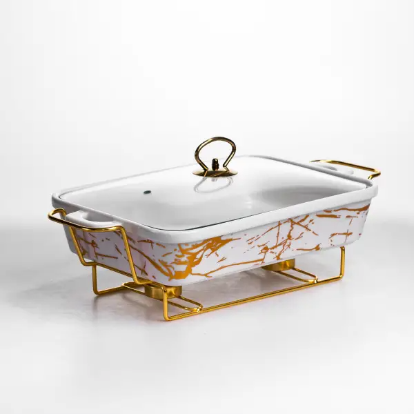Мармітниця порцелянова 2 л прямокутна на металевій підставці 40х22.5х15.5 см LT-3PCS-15, Закарпатська область