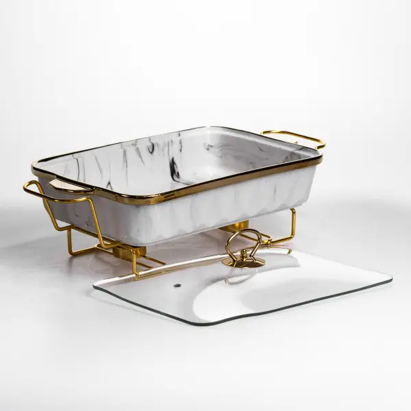 Мармітниця порцелянова 2 л прямокутна на підставці з підігрівом 40х22.5х15.5 см ML-77A-15, Закарпатська область