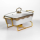 Марміт порцеляновий на металевій підставці з підігрівом — практичне рішення для подачі гарячих страв удома або під час заходів. Завдяки конструкції з підставкою та місцем для свічок-таблеток страва довше залишається теплою без підключення до електрики. Скляна кришка дозволяє контролювати вміст без необхідності відкривати ємність. Порцелянова чаша об’ємом 1 л підходить для супів, гарнірів, соусів або других страв. Металева підставка золотистого кольору забезпечує стійкість та витримує вагу виробу разом із вмістом. Компактні розміри дозволяють зручно розмістити марміт на столі, не займаючи зайвого простору. Модель розрахована на використання з двома свічками-таблетками, що забезпечує рівномірне підтримання температури. Конструкція легко розбирається для миття та зберігання. Підходить для щоденного використання або сервірування під час свят. Характеристики: Матеріал чаші: порцеляна Матеріал кришки: скло Матеріал підставки: метал Колір підставки: золотистий Об’єм: 1 л Висота: 11 см Ширина: 16 см Довжина: 31 см Вага: 1.7 кг Джерело підігріву: 2 свічки-таблетки