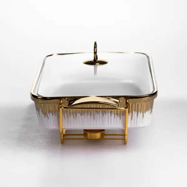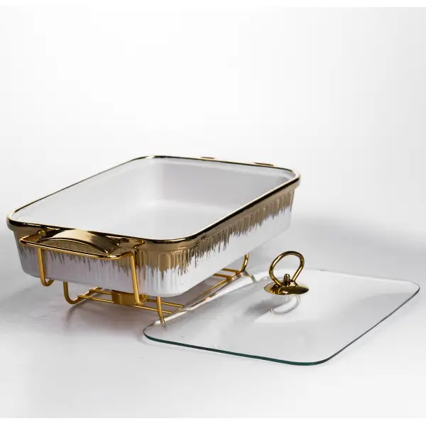 Мармітниця порцелянова 2 л на золотистій підставці з підігрівом 40х22.5х15.5 см ML-860-15, Закарпатська область